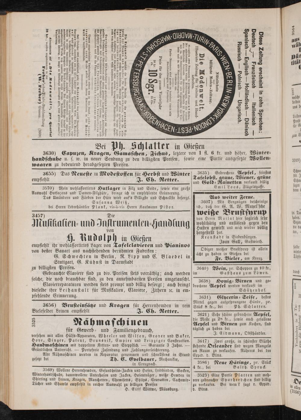 3655) Das Neueste in Modestoffen für Herbst und Winter empfiehlt I. Ch. Retter.