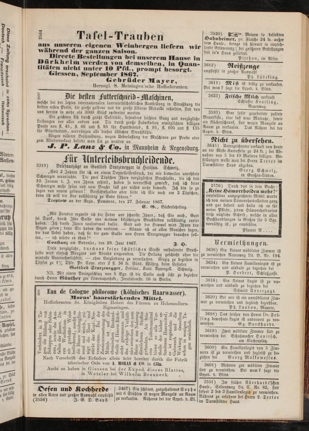 Aecht zu haben in Giessen bei der Exped. dieses Blattes in etzlar bei Wilhelm Brauneck. ,