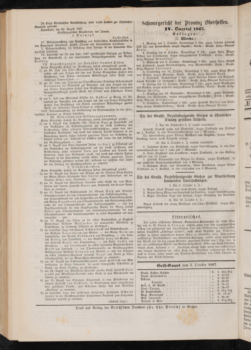 4. Donnerstag den 10. Oktober, Vormittag« 9 Uhr, gegen EliaS Öleier von Gießen, wegen Meineid«; Verth.: Großh. Hofg.-Advocat Batst.