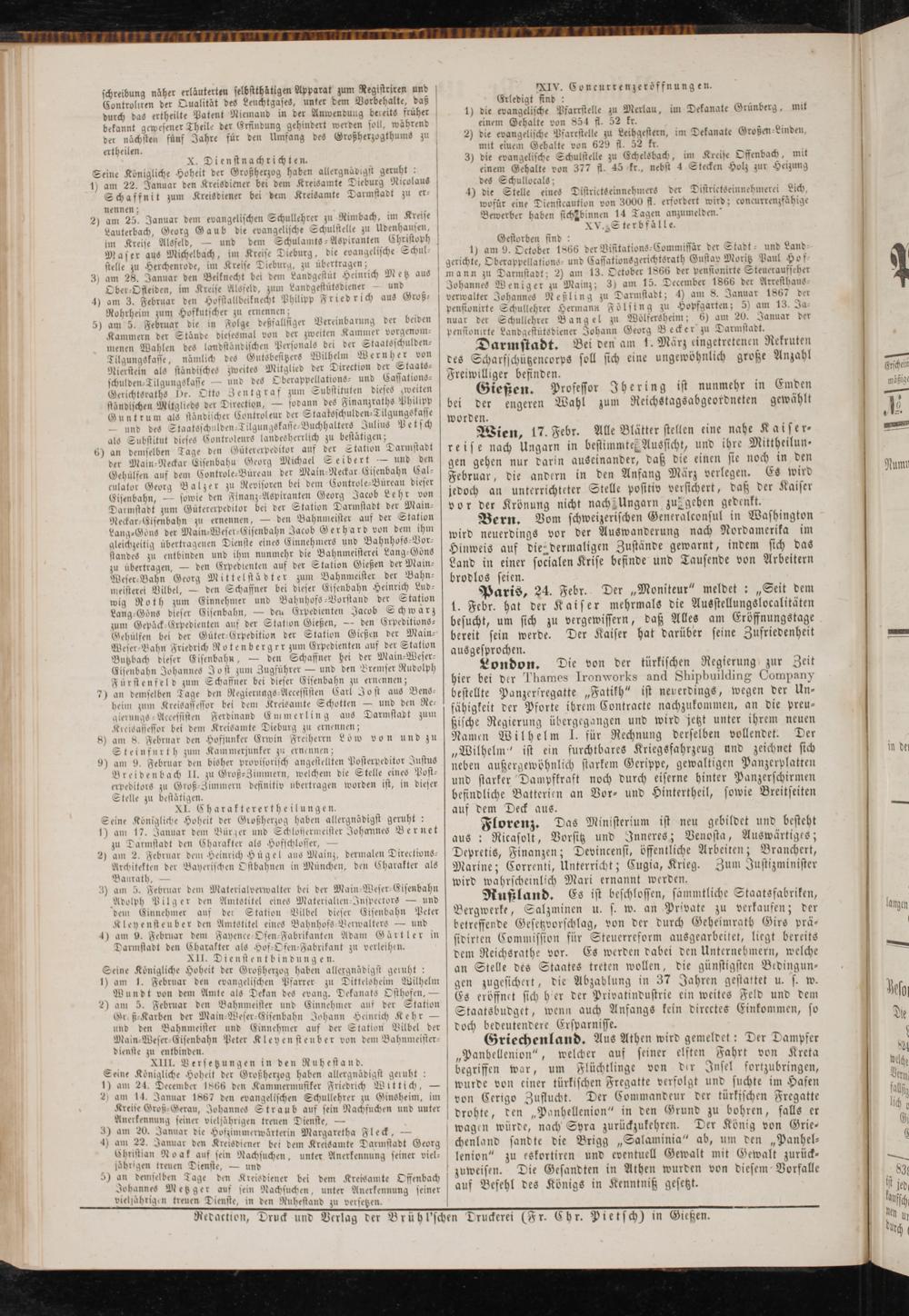 Redaktion, Druck und Verlag ter Brühl'schen Druckerei hFr. Ehr. Pietsch) in Gießen.