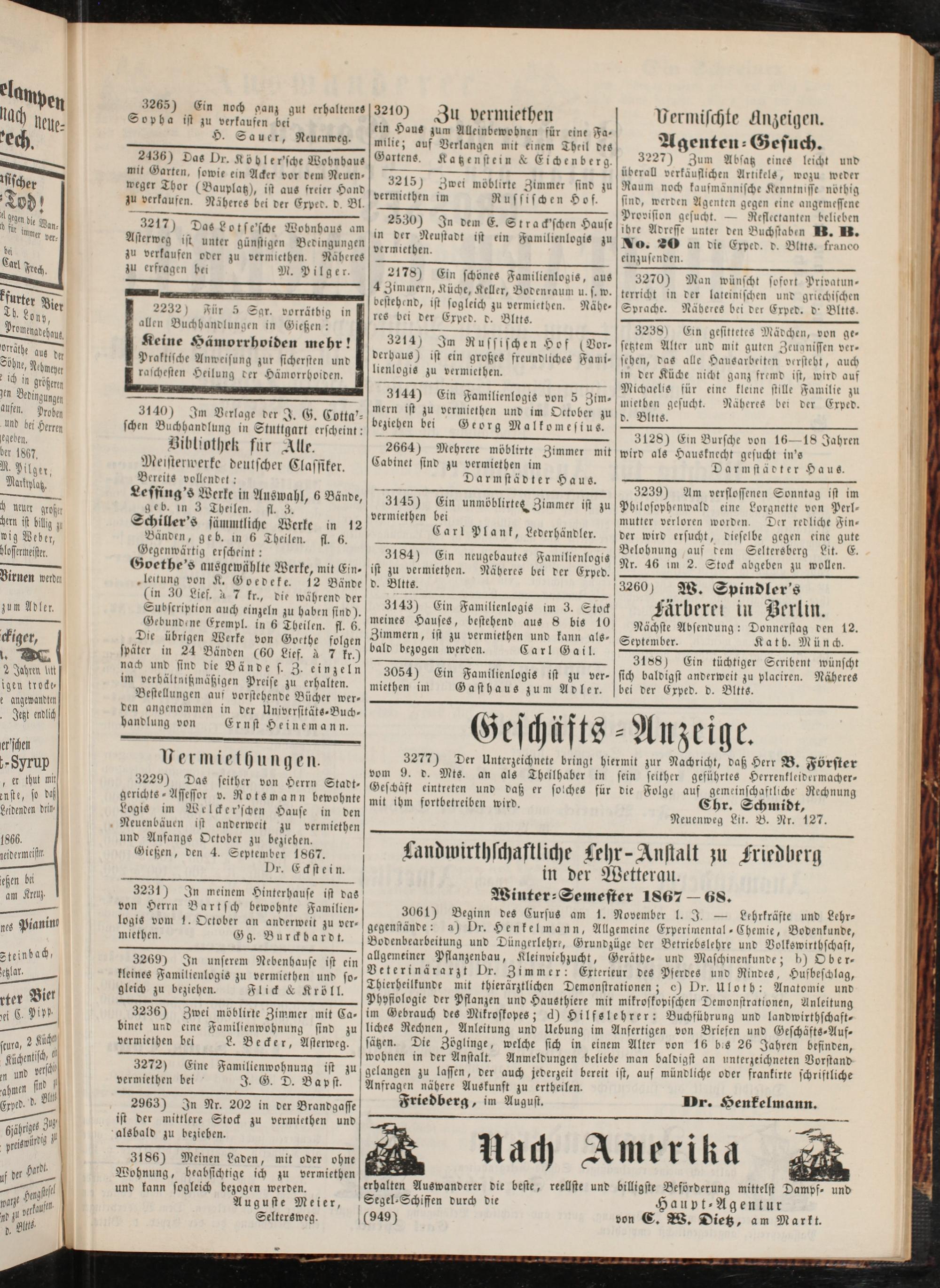 Vermischte Anzeigen.