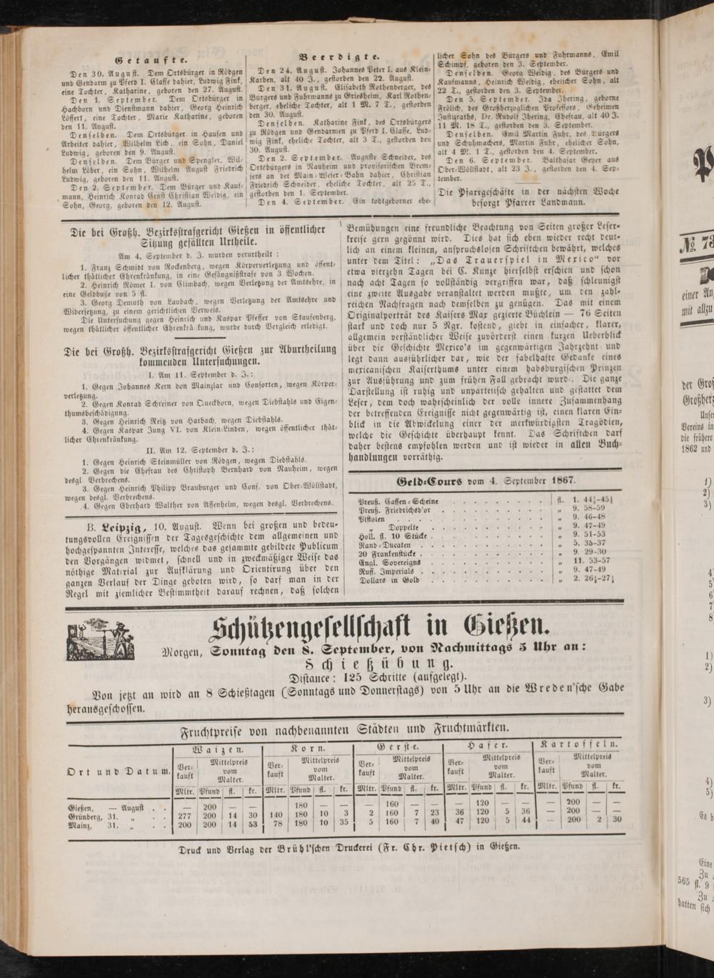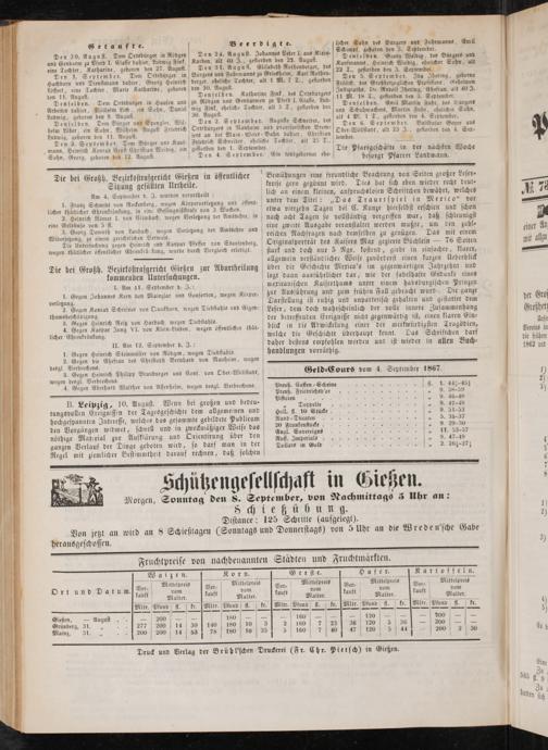 Geld-CourS vom 4. September 1867