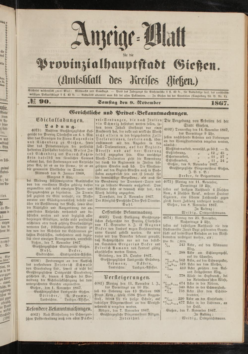 Ließen, den 7. November 1867. GroßherzoglichcS Stadtgericht Gießen.