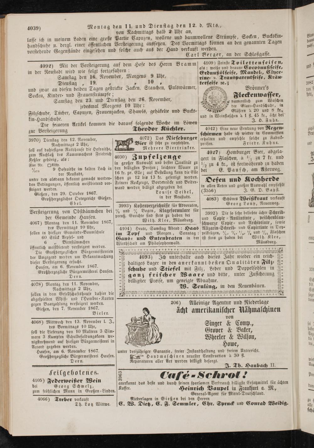 4067) Montag den 11. November 1867, des Vormittags 10 Uhr,