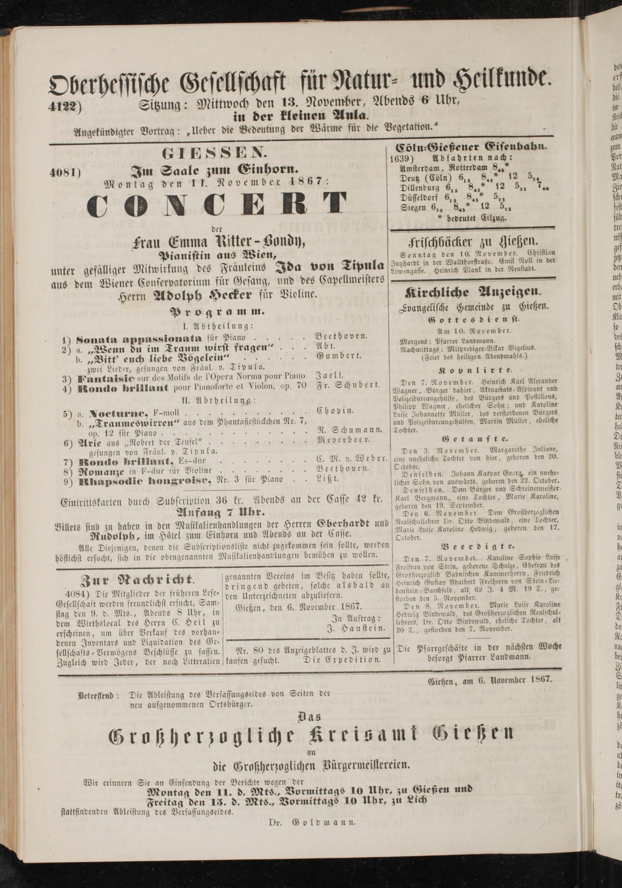 Gießen, den 6. November 1867.