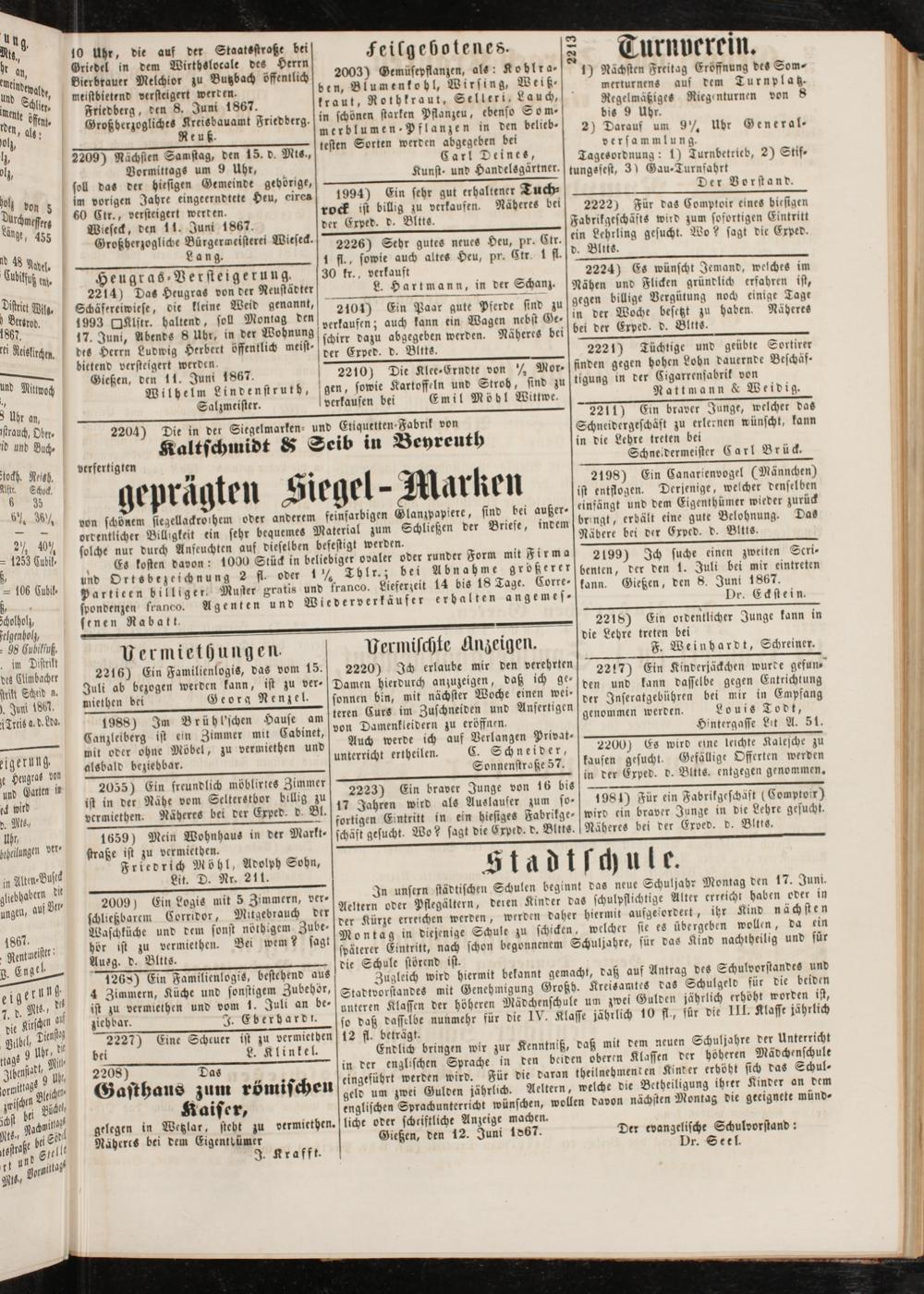 bietend versteigert werden Gießen, den 11. Juni 1867.