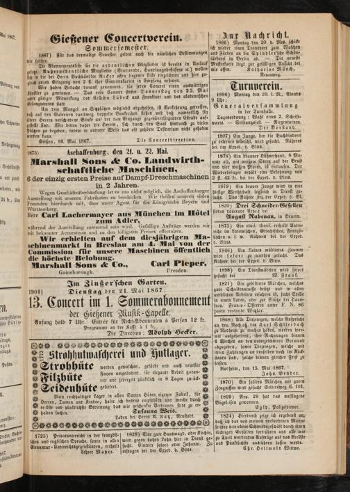 Gießen, 16. Mai 1867.Die Concertdirection.