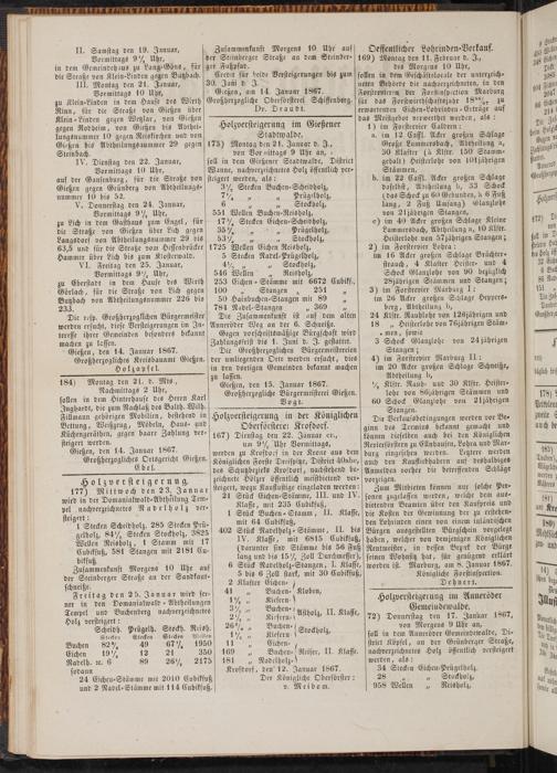 V. Donnerstag den 24. Januar, Vormittags 9 ‘/2 Uhr, zu Lich in dem Gasthaus zum Engel, für die Straße von Gießen über Lich gegen Langsdorf von Abtheilungsnummer 29 bis 63,5 und für die Straße vom Heffenbrücker Hammer über Lich bis zum Kiosterwald.