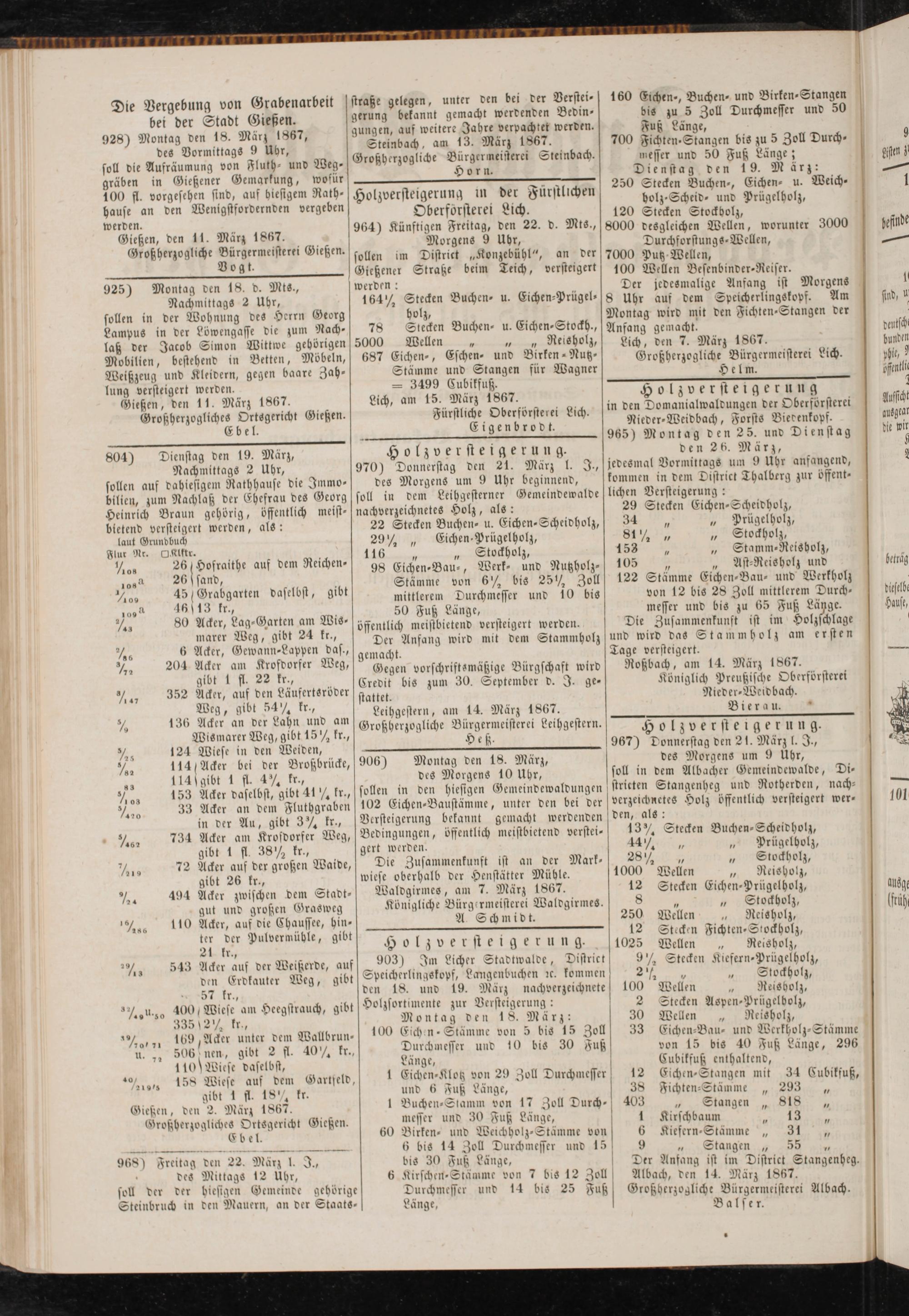 Gießen, den 2. März 1867. GroßherzoglicheS Ortsgericht Gießen.