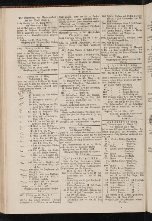 Holzversteigerunfl in der Fürstlichen Öberförsterei Lich.