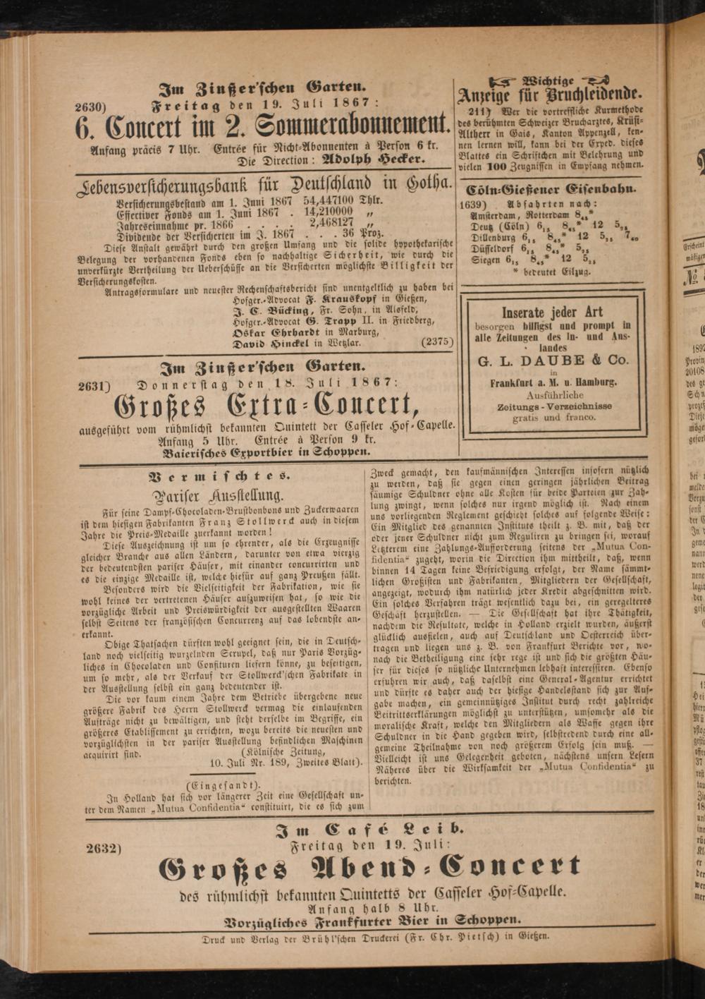 2631) Donnerstag d e n , 1 8. 3 u l i 1867:
