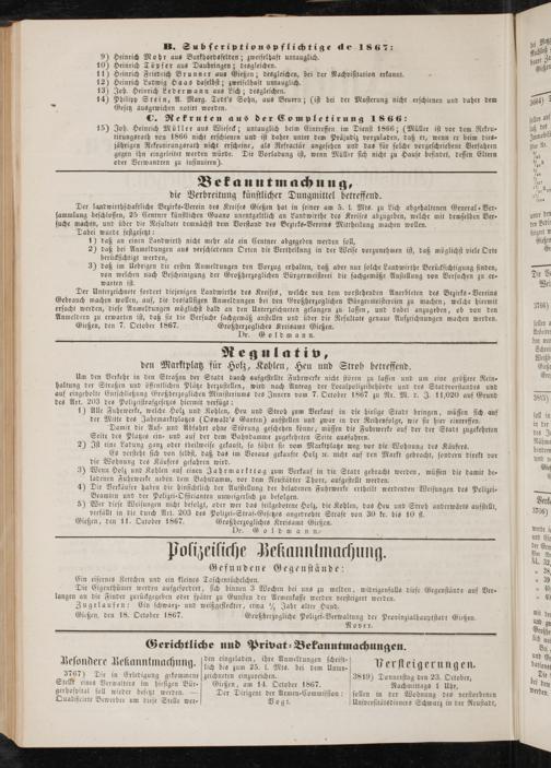Gießen, den 11. October 1867. Großherzoglicheö Kreisamt Gießen.