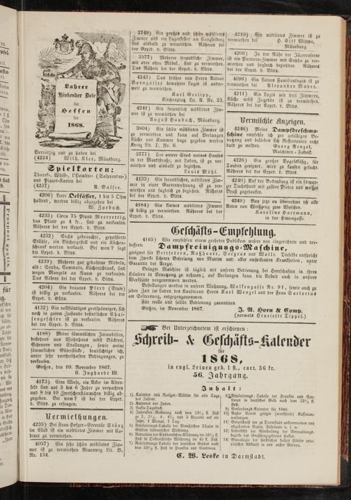 Gießen, im November 1867. I, A. Horn 8? Comp.