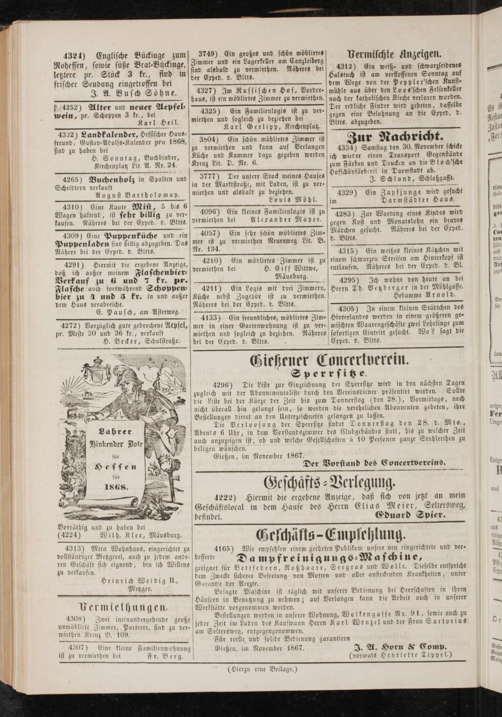 Gießen, im November 1867. *1« Horn ST Eomp.
