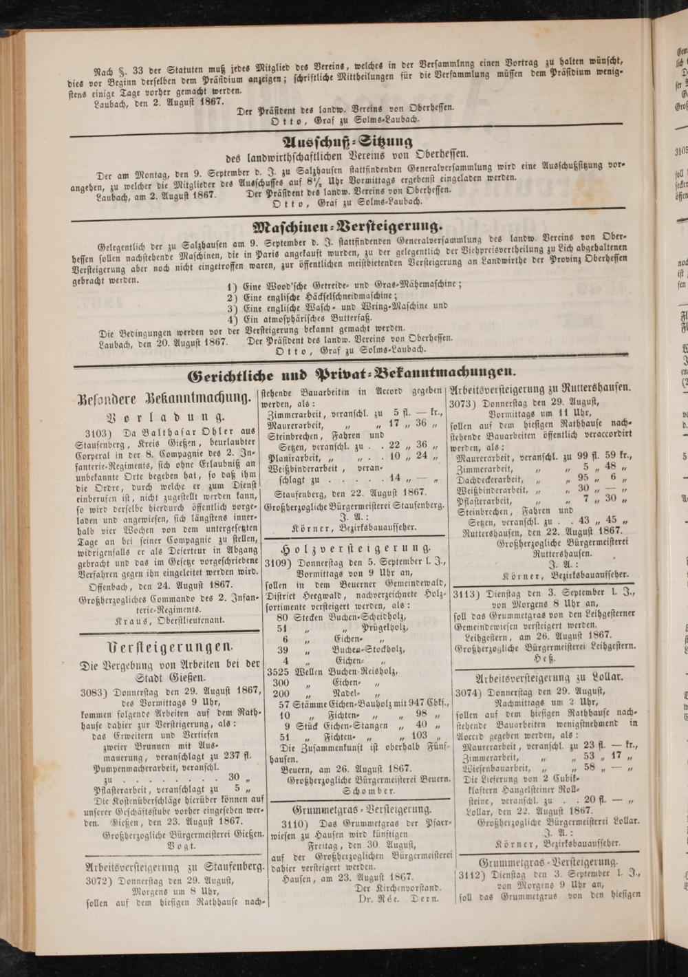 unserer Geschäftsstube vorher eingeseben wer- den. Gießen, den 23. August 1867.