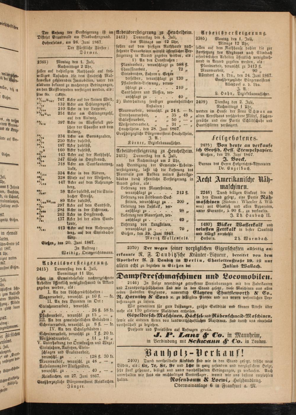 Allendorf a. d. Lda., den 24. Juni 1867. Großherzogliche Bürgermeisterei Allendorf a. d. Lda.