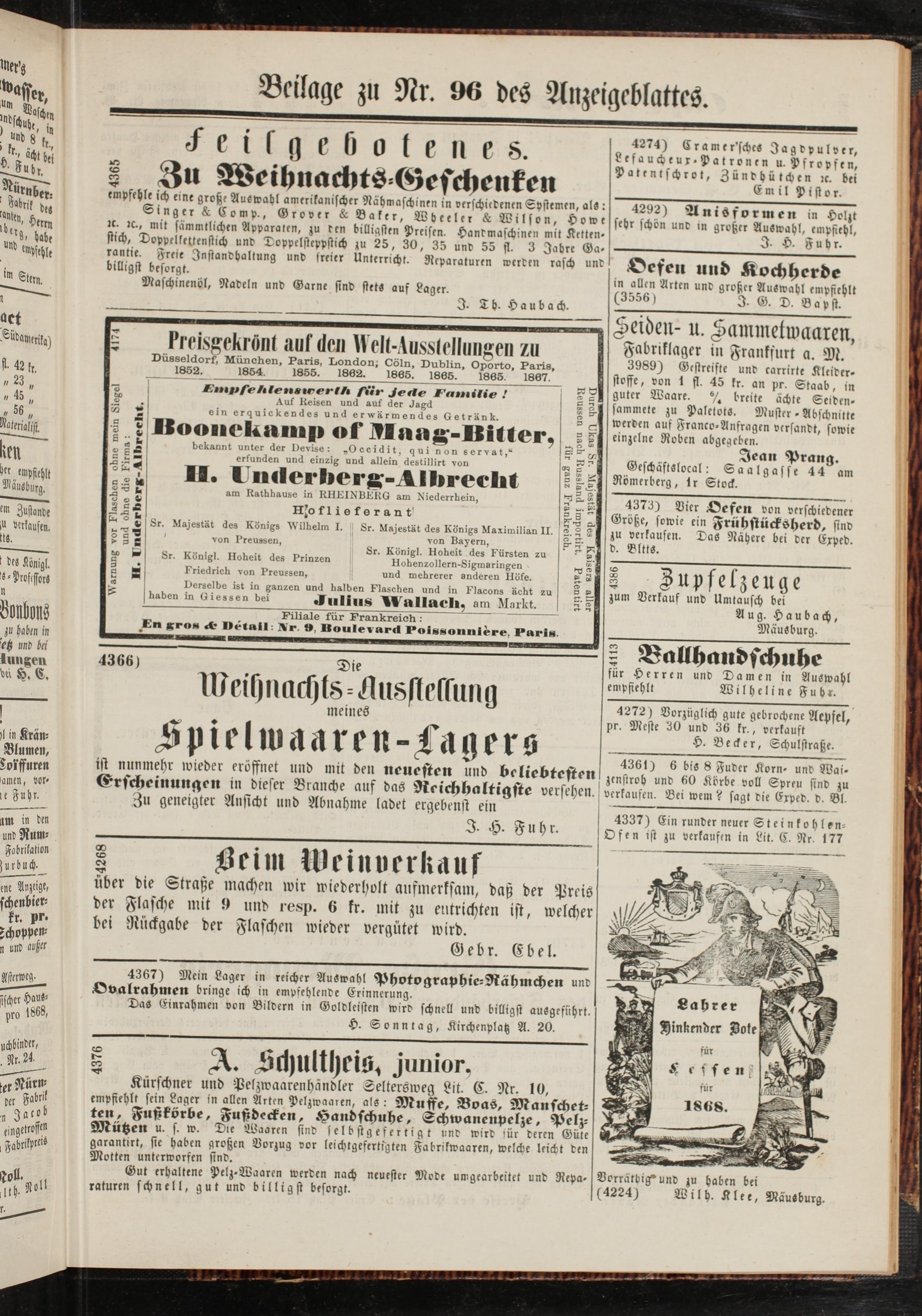 Beilage zu Nr. 96 des Anzeigeblattes