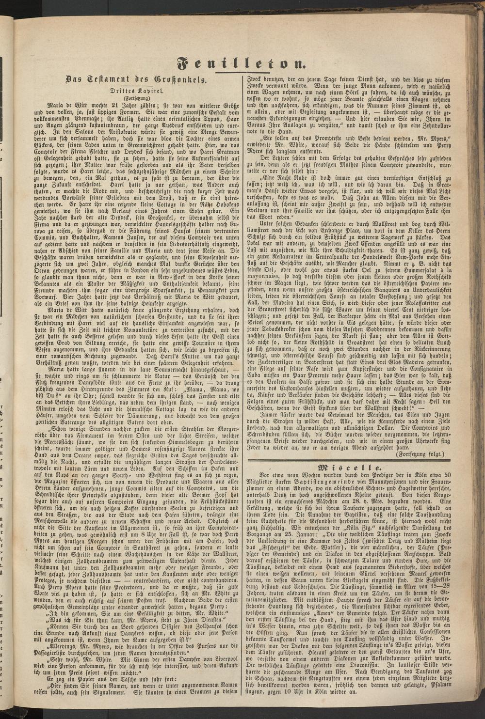 Vor etwa neun Wochen wurden durch den Prediger der in Köln etwa 50 Mitglieder starken Baptistengemeinde vier Mannspersonen und vier Frauenzimmer an einem Abende, wo ein abscheuliches Schnee- und Hagelwetter herrschte, unterhalb Deutz im hoch angeschwollenen Rheine getauft. Von diesen Neugetauften ist ein erwachsenes Mädchen am 28. v. Mts. begraben worden. Eine Erkältung, welche sie sich bei ihrem Taufacte zugezogen hatte, soll schuld an ihrem Tode sein. Die Annahme der Baptisten, daß eine solche Taufhandlung keine Nachtheile für die Gesundheit herbeiführen könne, ist hiernach wohl nicht ganz stichhaltig. Wir entnehmen der „Köln. Ztg." nachfolgende Darstellung des Vorgangs am 25. Januar: „Die vier weiblichen Täuflinge traten zum Zwecke der Umkleidung in eine Kammer des Zeltes (zwischen Deutz und Mülheim liegt das „Fischerzelt" der Gebr. Wattler), die vier männlichen, der Täufer (Prediger der Gemeinde) und ein Diakon in den abgeschlossenen Netzschuppen. Bald darauf erschienen der Täufer, in schwarzem Talare und rundem Hute, und die Täuflinge, bekleidet mit einem Hemd aus sogenanntem Bieberstoffe, über welches sie einen weißen wollenen, mit leinenem Gürtel versehenen Mantel geworfen hatten, in dessen Saum unten kleine Bleikugeln eingenäht sind. Die Fußbekleidung bestand aus Uebeischuhen. Die Täuflinge, sämmtlich im Alter von 15—28 Jahren, traten alsdann in einen Kreis um den Täufer, um sie herum die Ge- meinvemitglieder. Mit entblößtem Haupte sprach der Täufer ein auf die bevorstehende Handlung sich beziehendes, die Anwesenden sichtbar ergreifendes Gebet, welchem ein einstimmiges „Amen" der Gemeinde folgte. Der Täufer nahm dann den ersten Täufling bei der Hand, stieg mit ihm das Ufer hinab und muthig in's Wasser hinein, etwa zehn Schritte weit, so daß ihnen das Wasser bis an die Hüsten ging. Nun sprach der Täufer die in allen christlichen Consessionen bekannte Taufformel und tauchte den Täufling vollständig unter Wasser. Inzwischen war der Diakon mit dem folgenden Täuflinge in's Wasser gefolgt, diesen dem Täufer zuführend. Hierauf geleitete er den zuerst Getauften bis an'S Ufer, wo derselbe von einem anderen Diakonen zur Ankleidekammer geführt wurde. Die weiblichen Täuflinge geleitete eine Diaconissin. In lautloser Stille ver- harrte die zuschauende Menge am Ufer. Nach Beendigung des Taufaktes zog die Schaar, nachdem die Neugetauftcn von einem jeden einzelnen Mitgliede herzlich bewillkommt worden waren, fröhlich von bannen und gelangte, Psalmen singend, gegen 10 Uhr in Köln wieder an.
