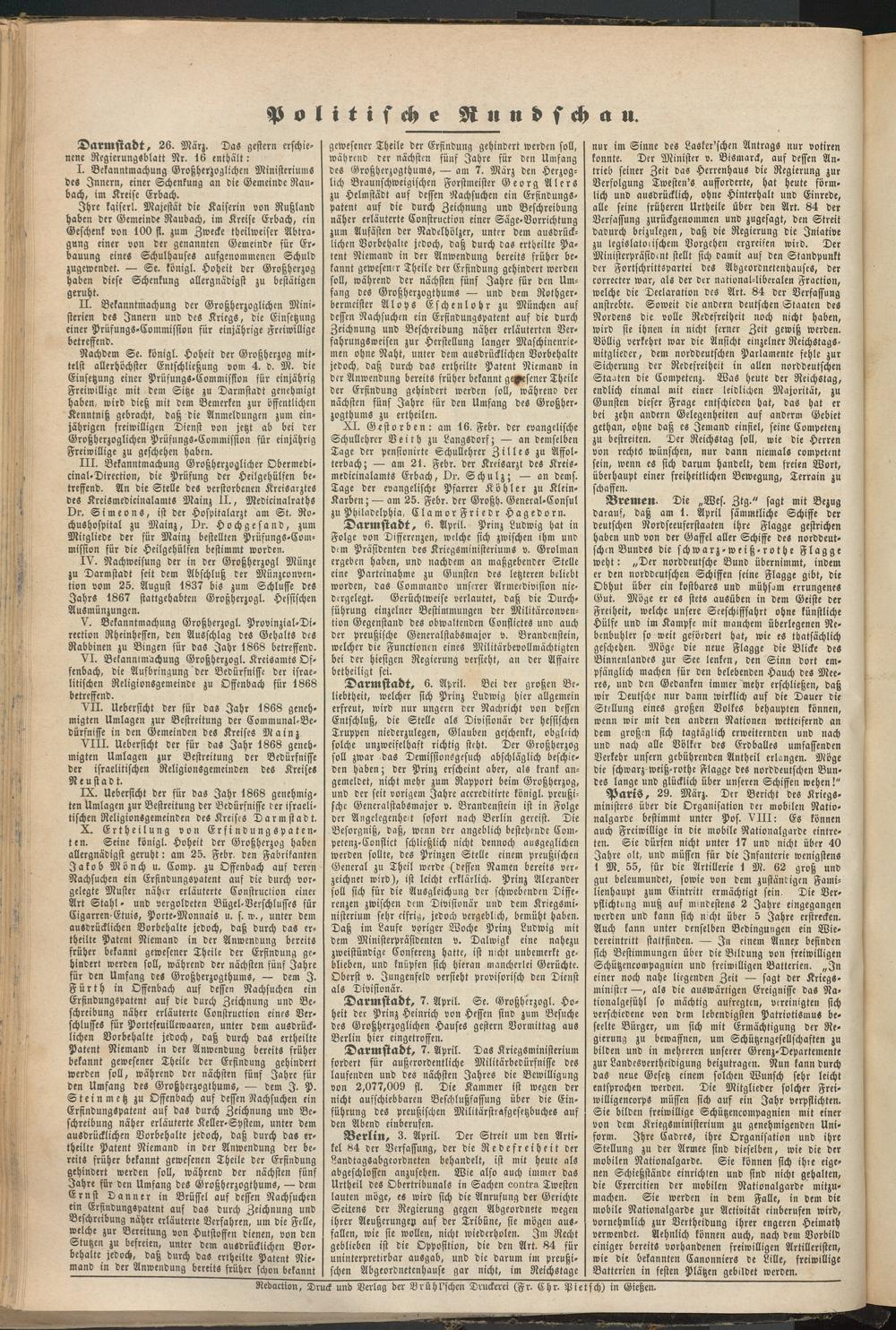 Redaction, Druck und Verlag der Brühl'schm Druckerei (Fr. Chr. Pietsch) in Gießen.