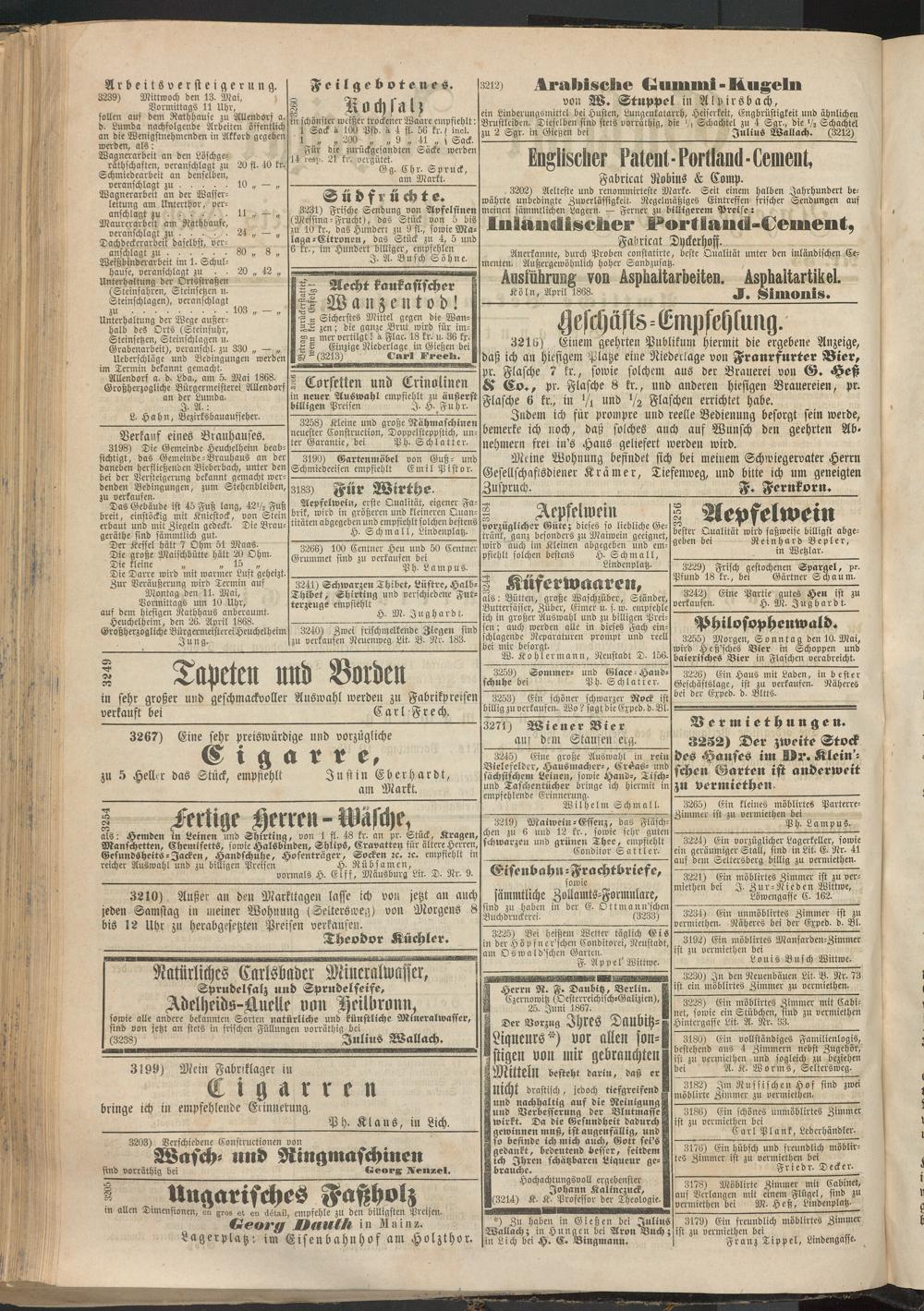 :i:) Zu haben in Gießen bei Julius Wallach; in Hungen bei Aron Buch; in Lich bei H. C. Bingmann.
