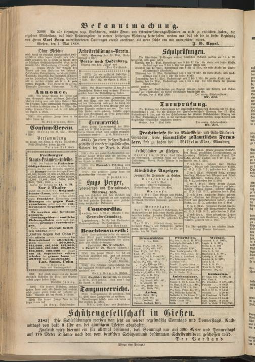 Gießen, den 1. Mai 1868. I. G. Appel.