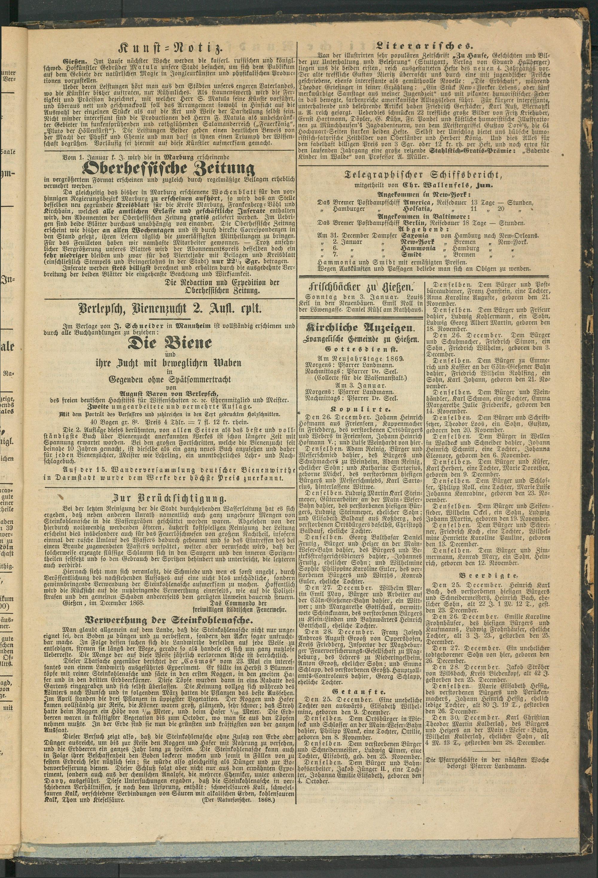 Vom 1- Januar k. I. wird die in Marburg erscheinende Oberhesfische Zeitung in vergrößertem Format erscheinen und zugleich durch regelmäßige Beilagen erheblich vermehrt werden.