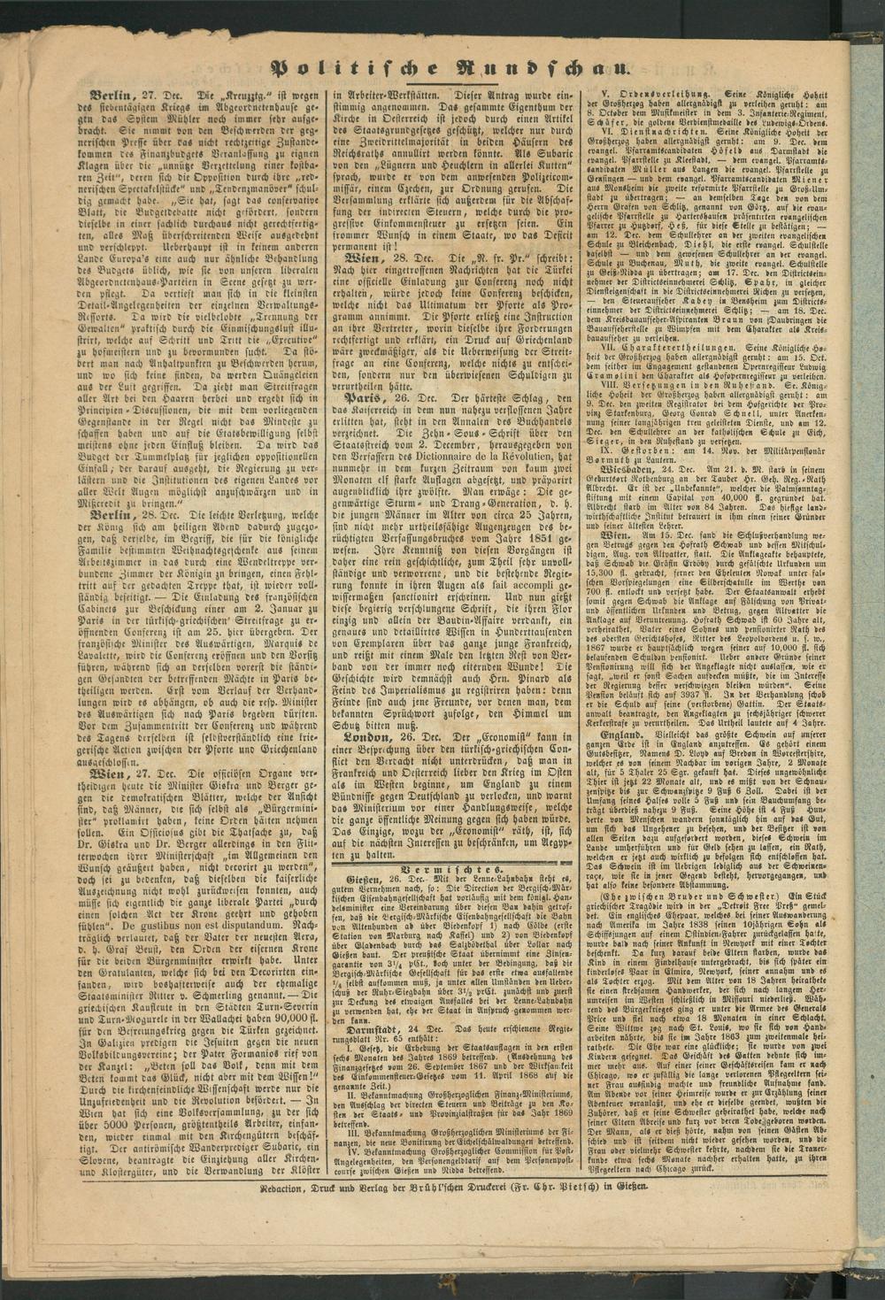 Redaction, Druck und Verlag der Brühl'schen ® ruderet (Fr. Chr. Pietsch) in Gießen.