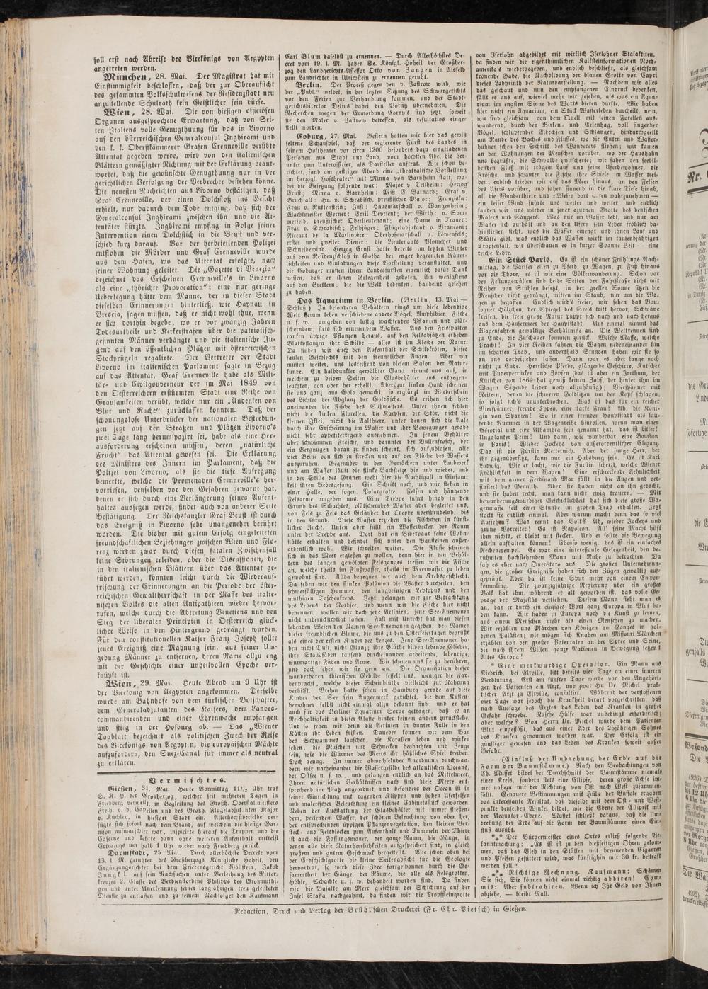 Redaction, Druck und Verlag der Brühl'schen Druckerei (Fr. Chr. Pietsch) in Gießen.