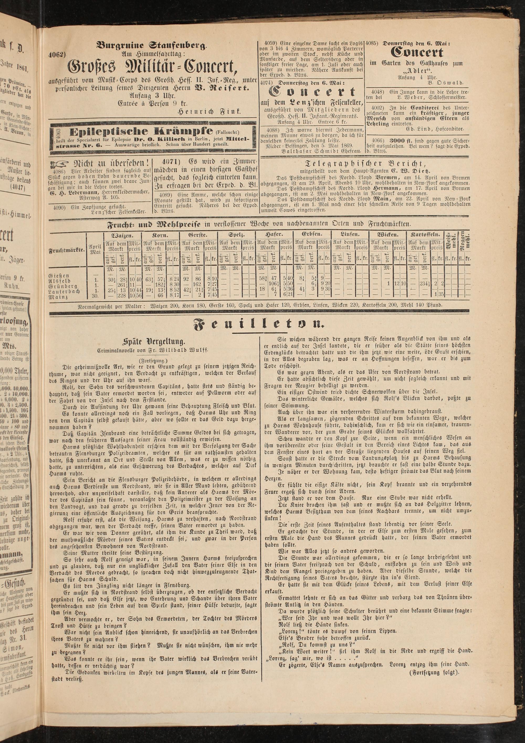 Großh. Hess. II. Jnfant.-Regiments. ______Anfang 4 Uhr. Entree 6 kr.______