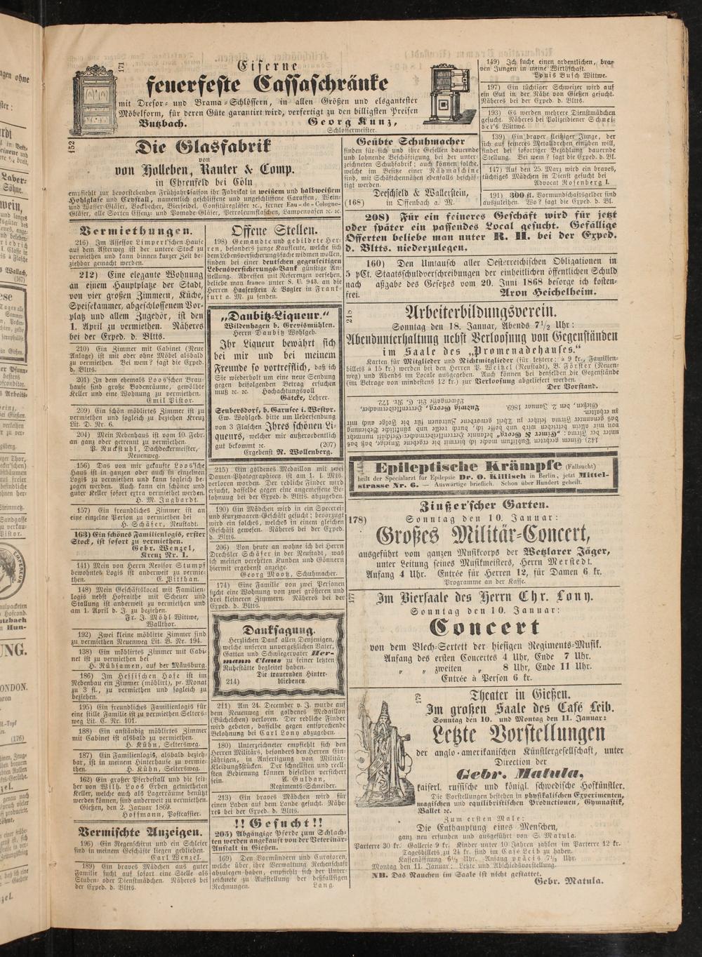 180) Unterzeichneter empfiehlt sich den Herren Militärs, besonders den Herren Einjährigen, in Anfertigung von Militär- Kleidungsstücken. Der schnellsten und reellsten Bedienung können dieselben versichert sein. A. Guldan,