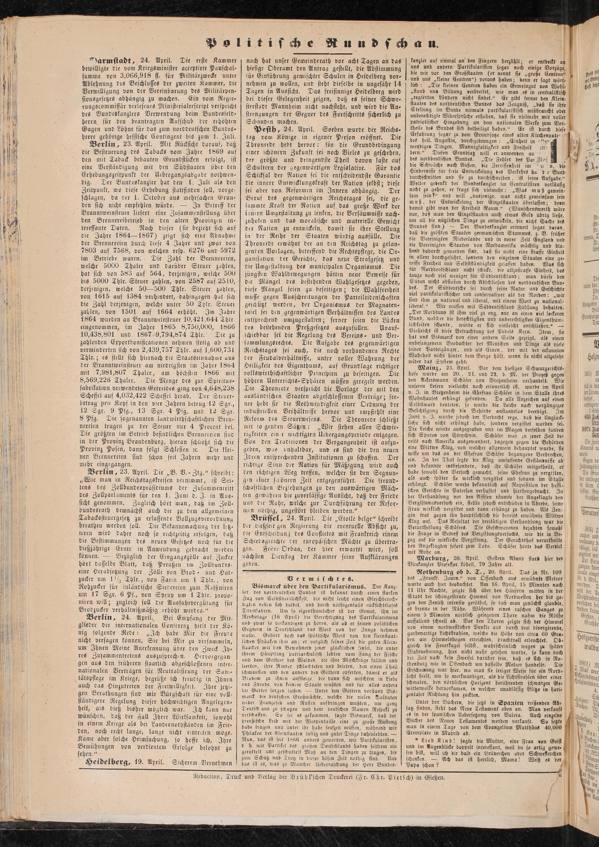 Redaction, Druck und ^>erlag der Brüh Aschen Druckerei (Fr. Chr. Pietsch) in Gießen.