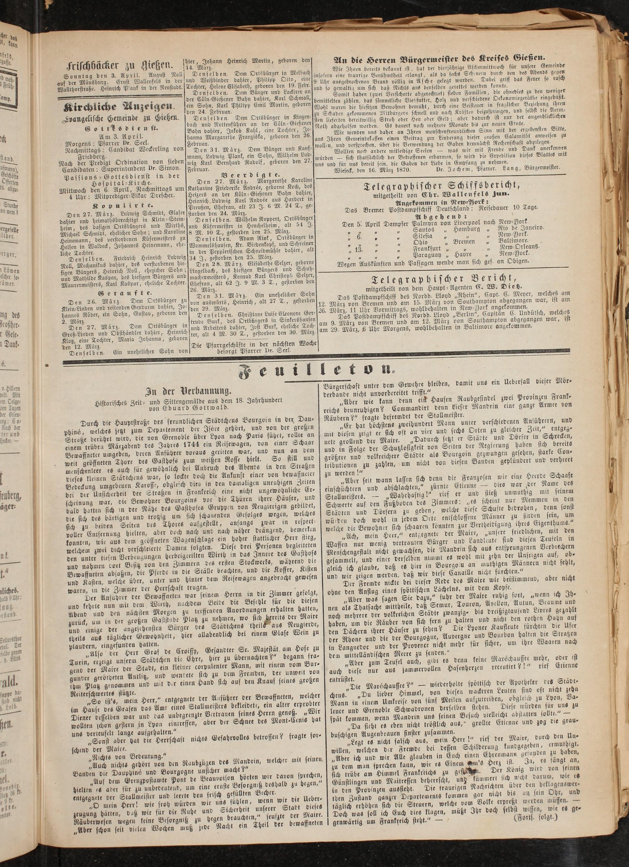 Den 2 6. März. Dem Ortsbürger zu Klein-Linden und reitenden Gendarm dahier, Johannes Röder, ein Sohn, Gustav, geboren den 2. März.