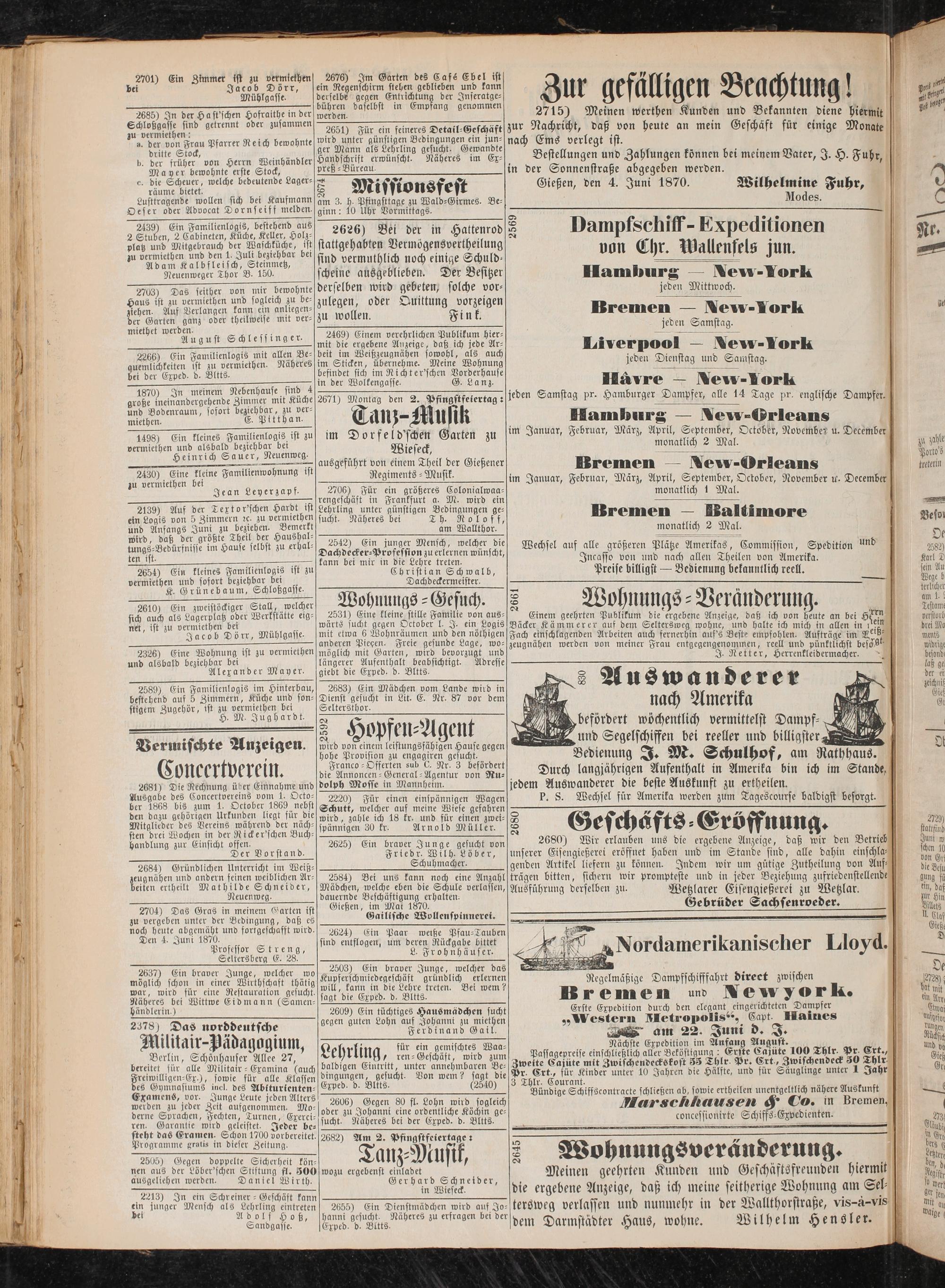 Meinen geehrten Knnben und Geschäftsfreunden hiermit die ergebene Anzeige, baß ich meine seitherige Wohnung am Sel- teröweg verlassen und nunmehr in der Wallthorstraße, vis-a-vis Idem Darmstädter Haus, wohne. Wilhelm Heusler.