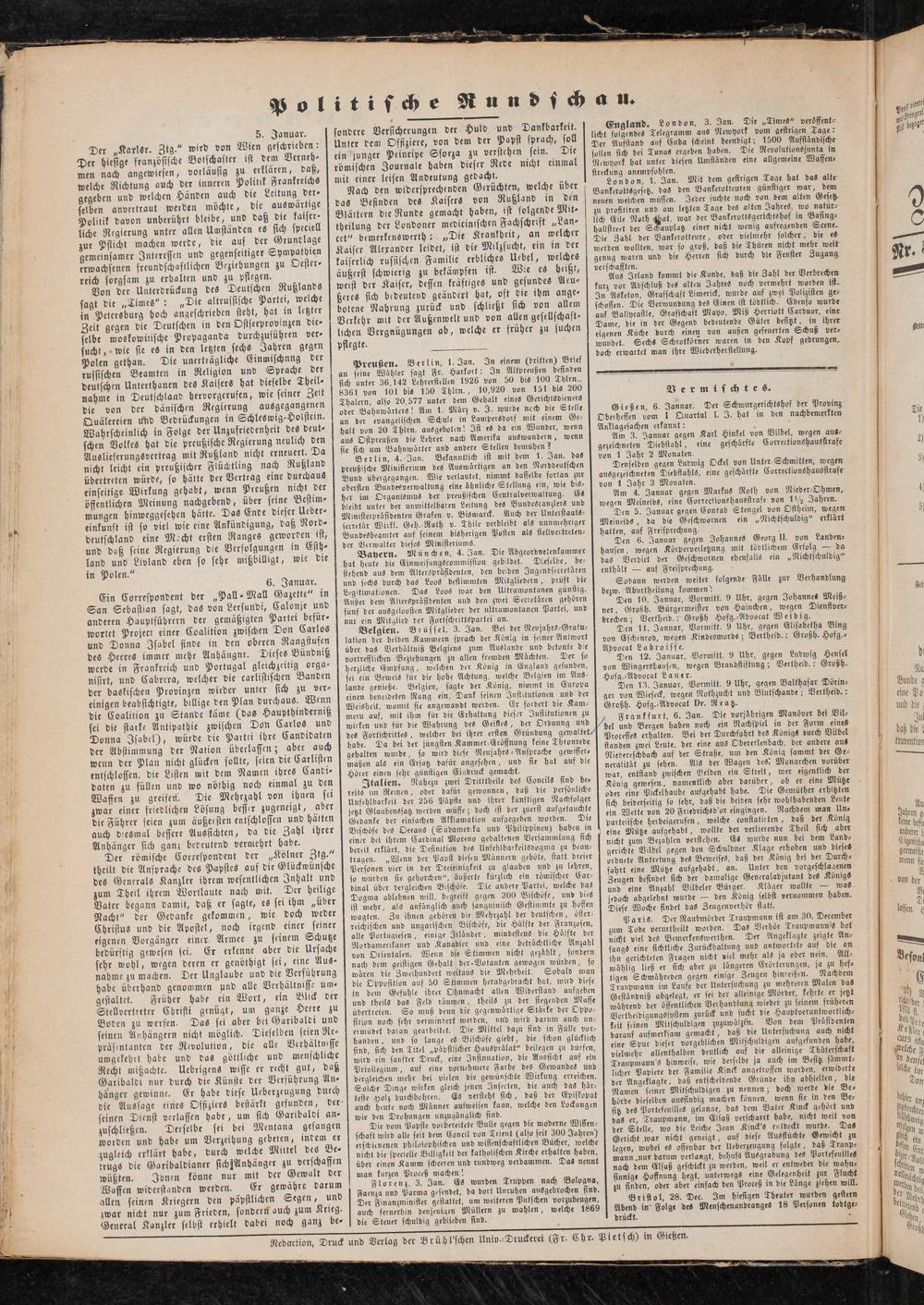 Ncdaction, Druck und Verlag der Brühl'schm Univ.-Druckerei (Fr. Chr. Pietsch) in Gietzen.