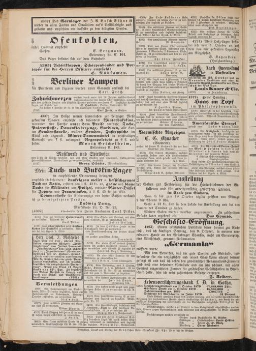 Redaction, Druck und Verlag der Brühl'fchen Univ.-Druckerei (Fr- Chr- Pietsch) in Gießen-