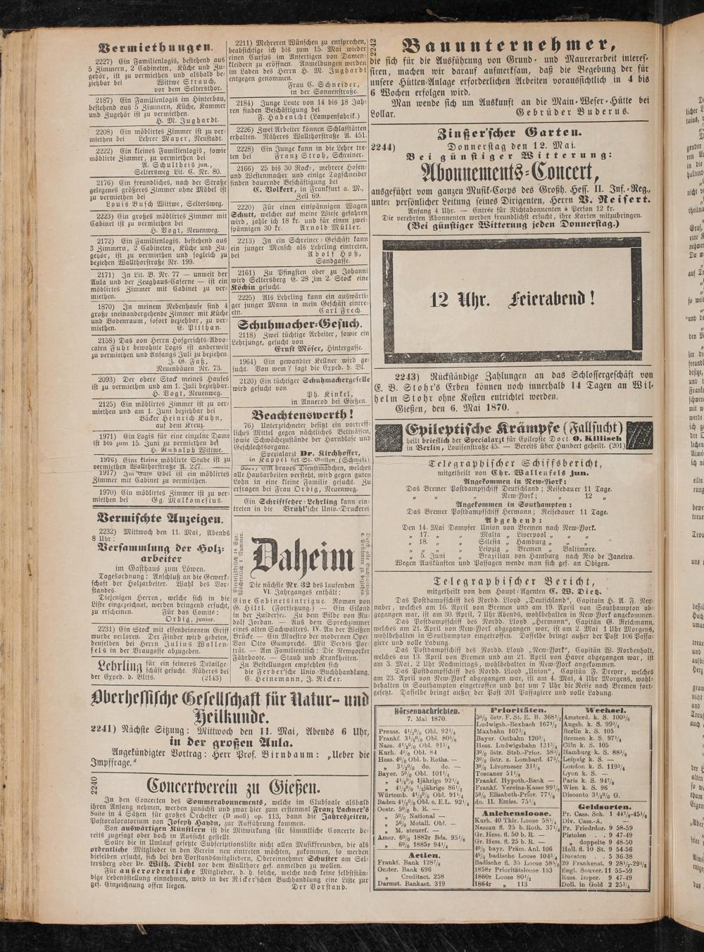 2232) Mittwoch den 11. Mai, Abends 8 Uhr: