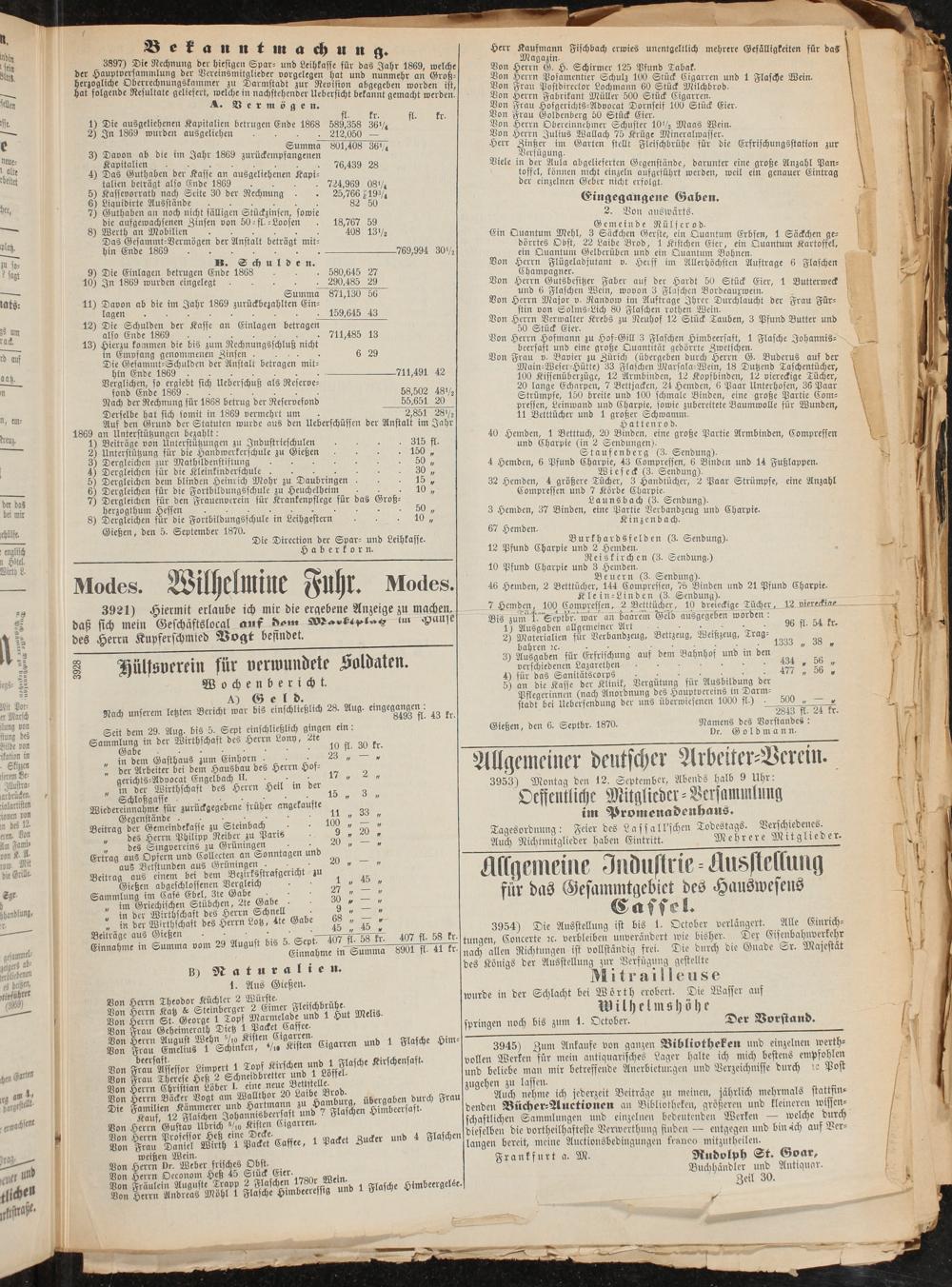 Gießen, den 6. Septbr. 1870.