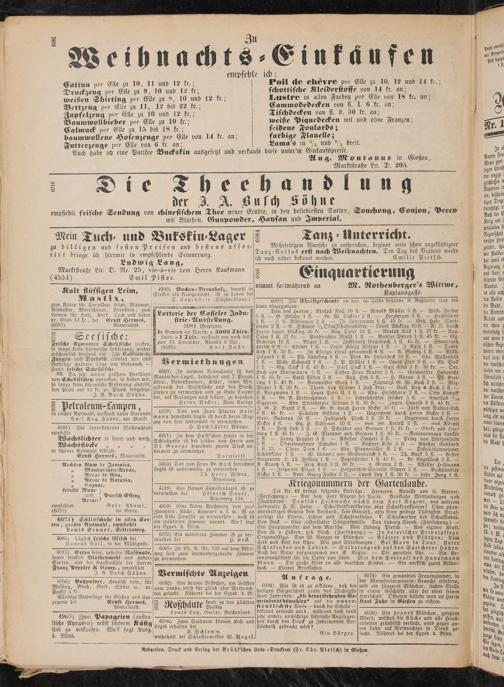 i Einquartierung nimmt fortwährend an M. Rothenbergers Wittwe, ___________________________________________Kaplansgaffe.____________ 6080) Für Christgeschenke an bas im Felde stehende 11 Regiment sind bis heute eingegangen: