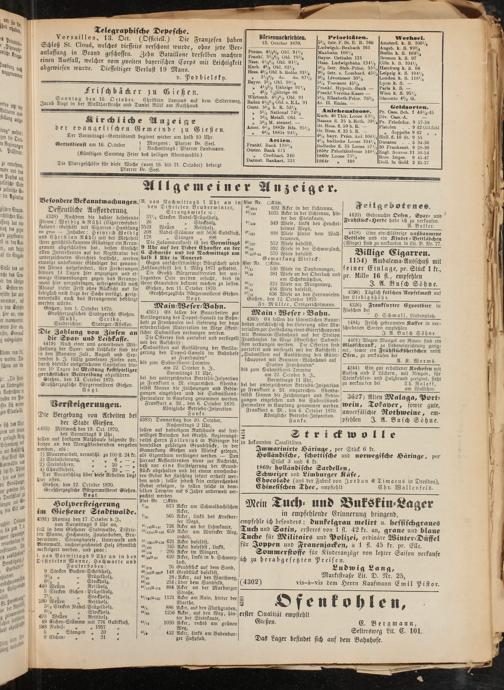 Gießen, den 13. October 1870. Großherzogliche Bürgermeisterei Gießen.