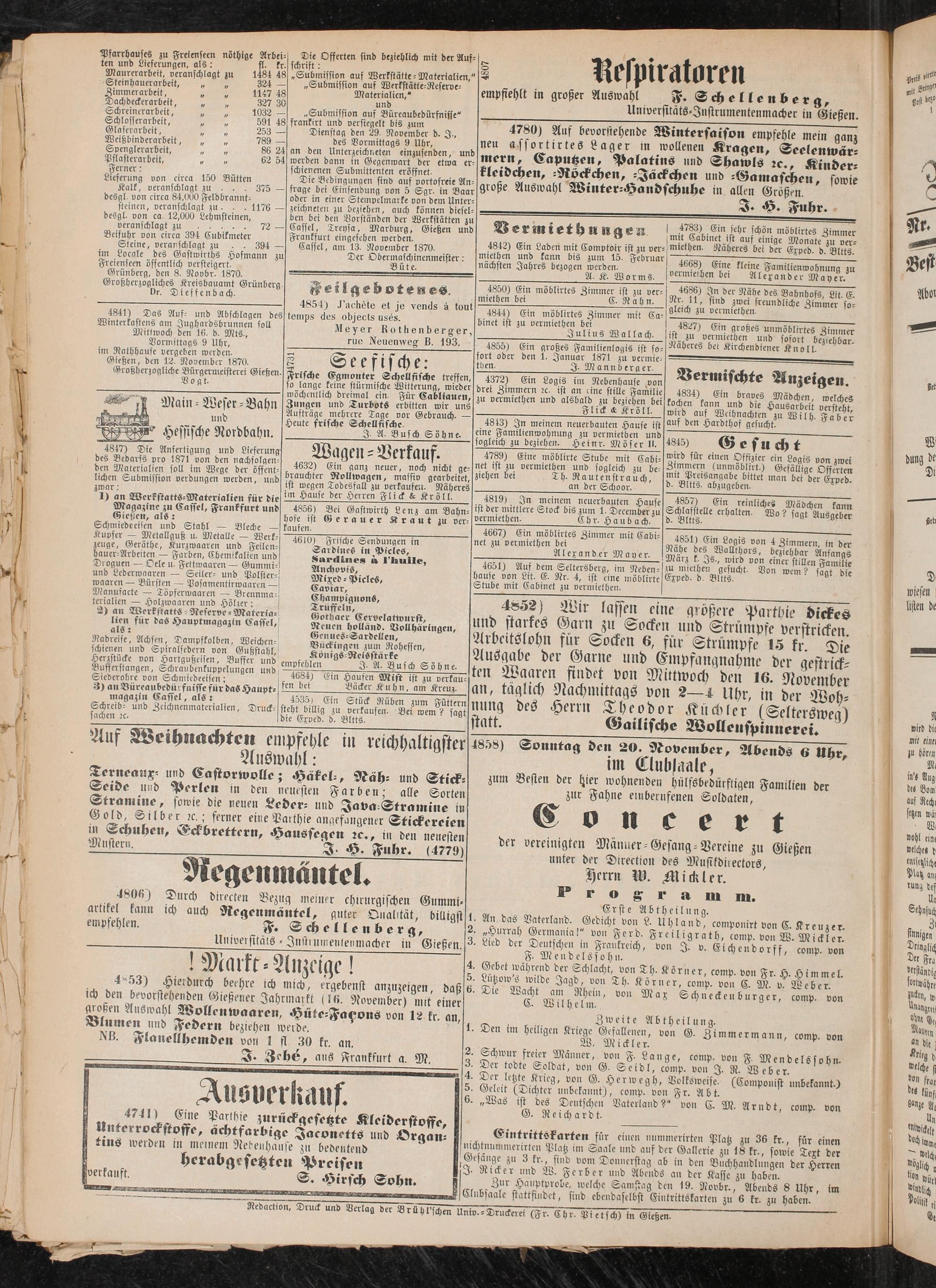 Gießen, den 12. November 1870. Großherzogliche Bürgermeisterei Gießen.