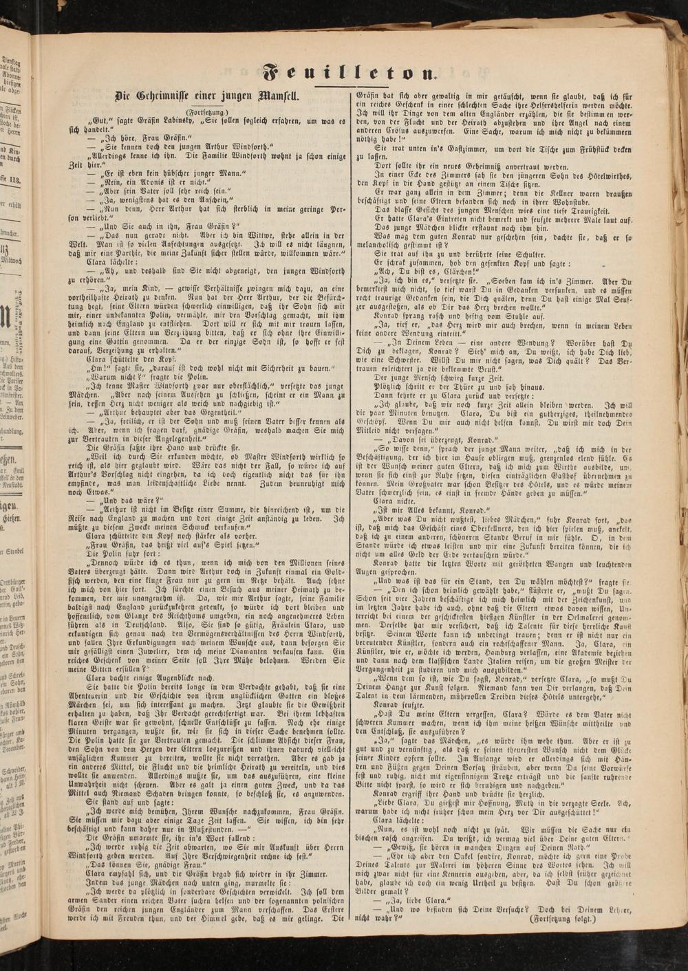 Die Geheimnisse einer jungen Mamsell.
