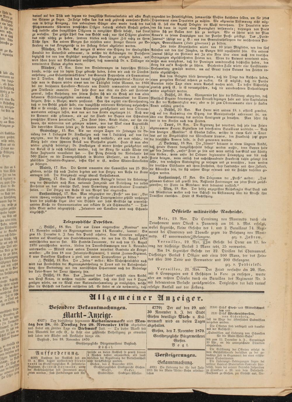 4770) Der auf den 29. und 30 November d. I. der Stadt Gießen bewilligte Vieh- u. Krämermarkt wird an diesen Tagen abgehalten.