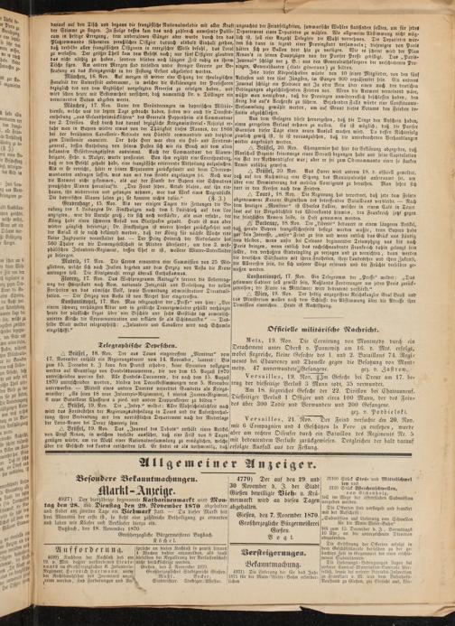 Gießen, den 2. November 1870. Großherzogliches Stadtgericht Gießen.