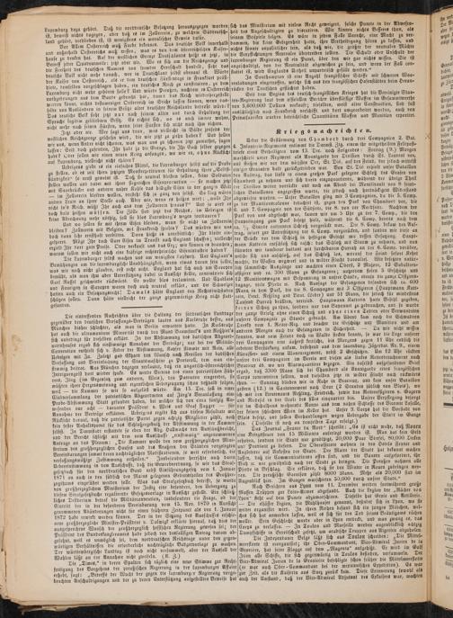 Nach Berichten au« Lyon vom 11. December roerDcn fortwährend große Massen Truppen zur Loire-Armee abgesandt. Auch die Legion Der »Rächer von ■ Lyon" steht auf Dem Puncte abzumarfchiren. Dieselbe hat Geme und Artillerie, t — Die elsässer Legion, die Mühlhauser genannt, befindet sich in Lyon, wo sie ■ weiter organisirt wird. In ihren Reihen befanD sich ein junge« Mädchen, wel- . chcs sich hat anwerben lassen, weil e« sich für Den ToO seine« Bräutigam« rachen wollte. Sein Geschlecht wurOe aber in Lyon entoedt, unD man zwang c«, Da« Corp, zu verlassen. — In Toulon und Marseille werden augenblicklich ach zig Dampfschiffe in Bereitschaft gesetzt, um arabische Truppen au« Algerien abzuholen.