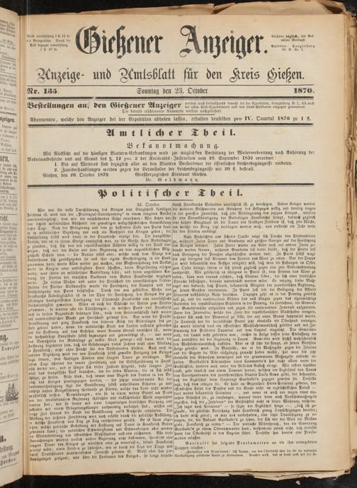 Gießen, den 20. October 1870. Großherzogliches Kreisamt Gießen.