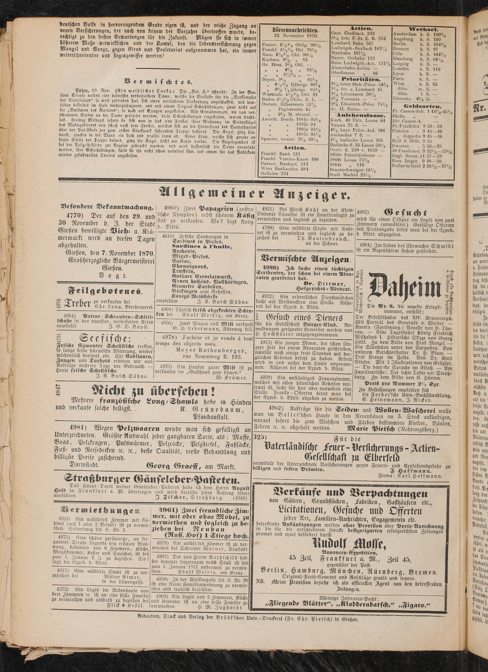 Gießen, den 7. November 1870 Großherzogliche Bürgermeisterei Gießen.