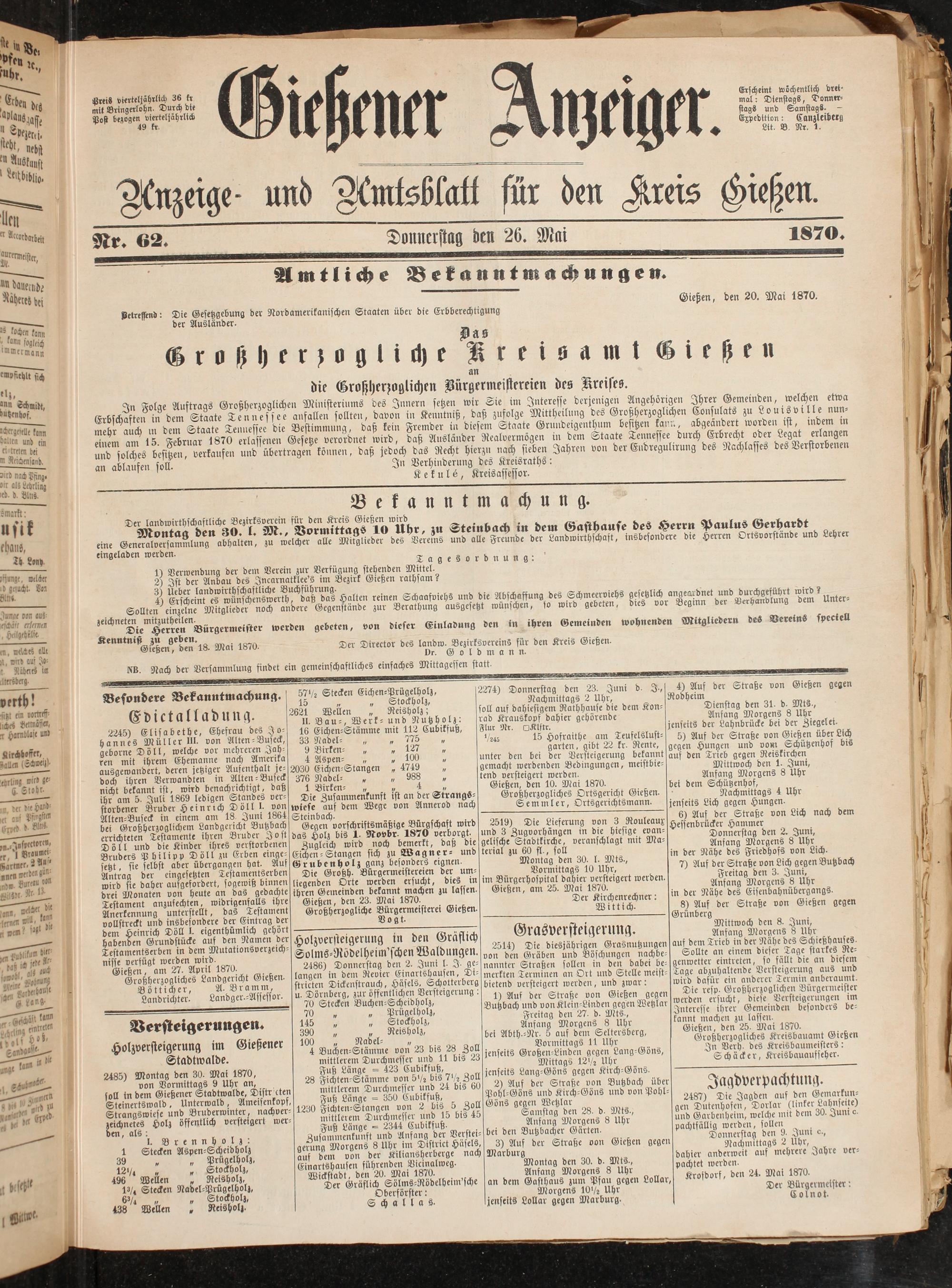 Gießen, am 27. April 1870. Großherzogliches Landgericht Gießen.