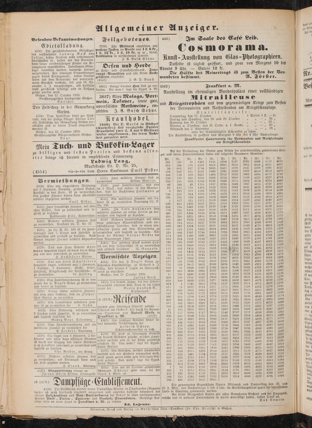 Gießen, den 22. October 1870. Großherzogliche Bürgermeisterei Gießen.