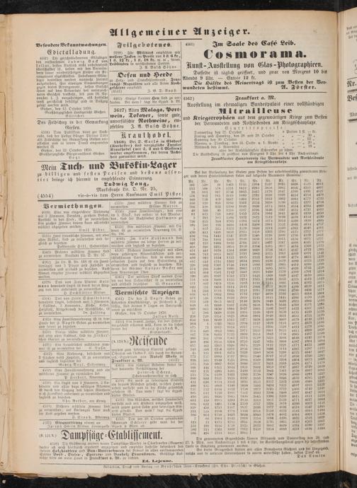 4150) Ein Logis von 4 Zimmern, 2 Ca- 6 in et en und allen dazu nöthigen Räumen ist durch den Wegzug des letzten Miethers nach Frankfurt anderweit zu vermiethen und sogleich zu beziehen.