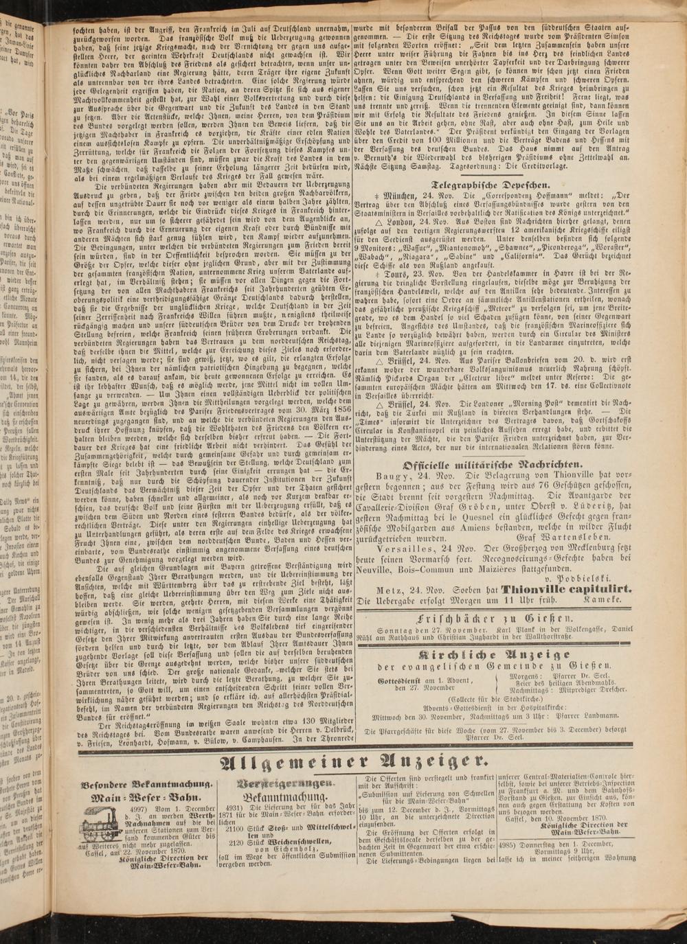 auf Weiteres nicht mehr zugelassen. Cassel, am 22. November 1870- königliche Dlrection der Maln-Weser-Bahn.